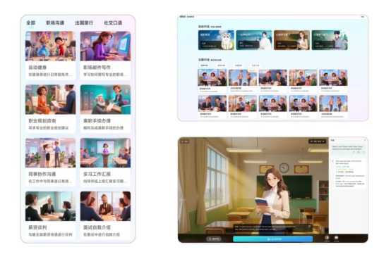 AI口语:多语种,多阶段交互式训练,依托新东方自研大模型和口语测评能力,通过个性化的场景式学习,帮助学生提高外语口语水平。