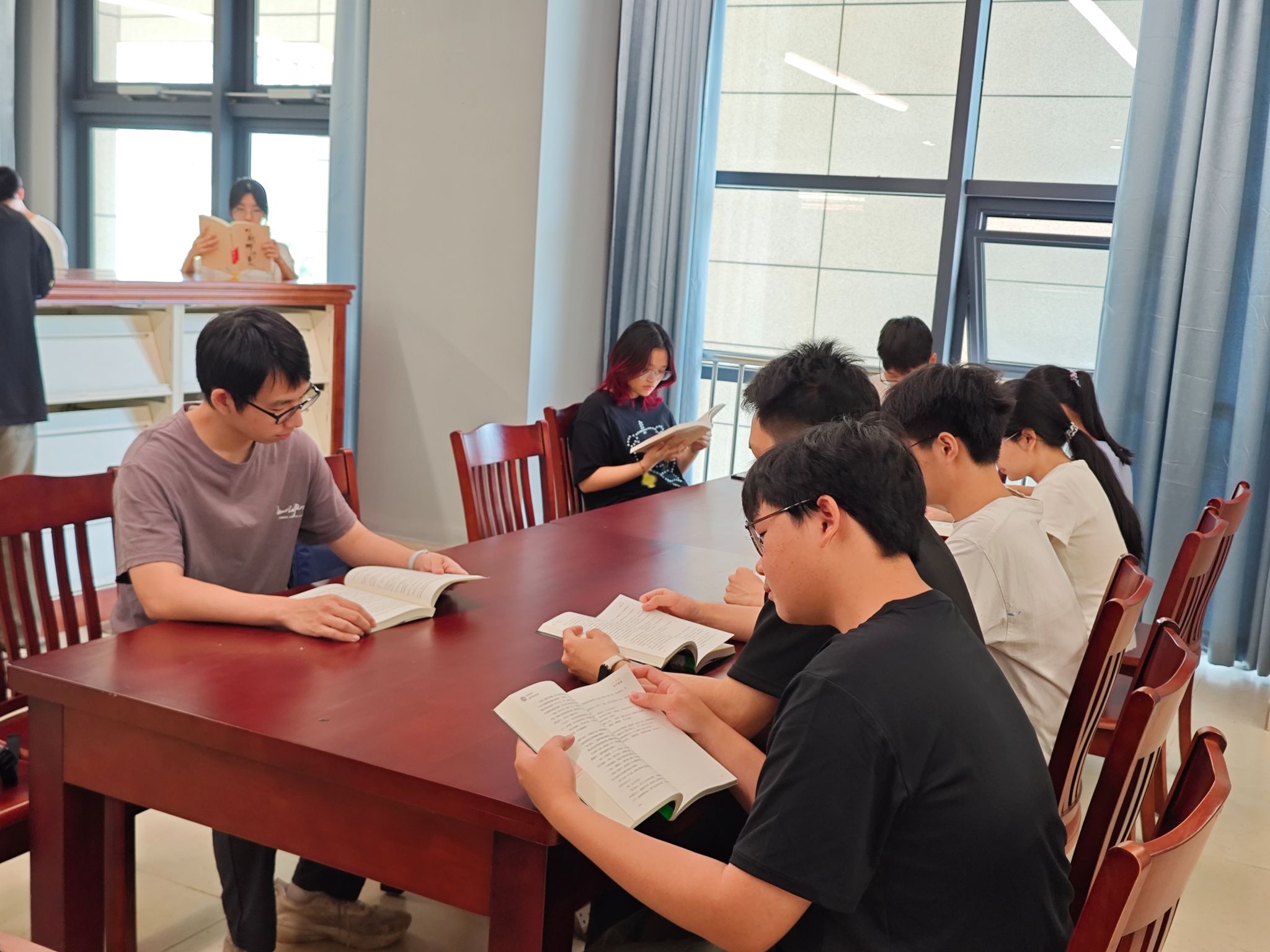 在春意盎然的四月天里,为迎接第31个"世界读书日"的到来,深入贯彻"倡导全民阅读,建设书香社会"的号召,4月17日上午,我校图书馆举办了以“品味书香•享阅读之乐”为主题的粤港澳桂琼“共读半小时”活动。本次活动我校共计有40余名学生自发参与,以沉浸式阅读传递书香力量,营造浓厚的校园文化氛围。